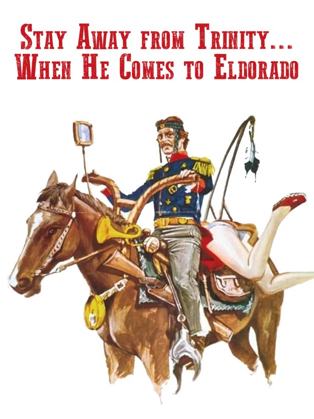 Also known as Pistoleiros de Trinity, Go Away! Trinity Has Arrived in Eldorado, Stay Away from Trinity… When He Comes to Eldorado and Trinity in Eldorado, this stars Stan Cooper (AKA Stelvio Rosi, The Hanging Woman, Something Creeping in the Dark) and Gordon Mitchell (a man so into the Italian Western industry he was paid with a Western town of his own that other movies were fllmed at) as some criminals who decide to rob Mexican general El Dorado (Craig Hill, The Bloodstained Shadow).