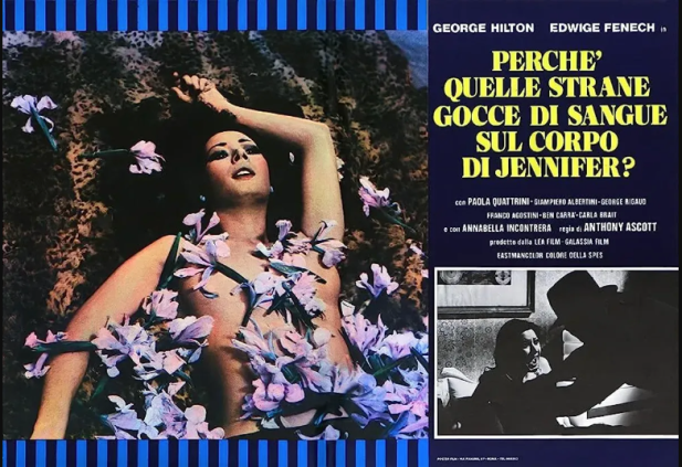 1970’s The Bird with the Crystal Plumagebecame a worldwide hit, bringing giallo to the world. But by 1972, in its native Italy, the films had already become self-aware parodies of the genre. Witness 1972’s The Case of the Bloody Iris (originally titled Why Are There Strange Drops of Blood on Jennifer’s Body?), directed by Giuliano Carnimeo (Exterminators of the Year 3000).