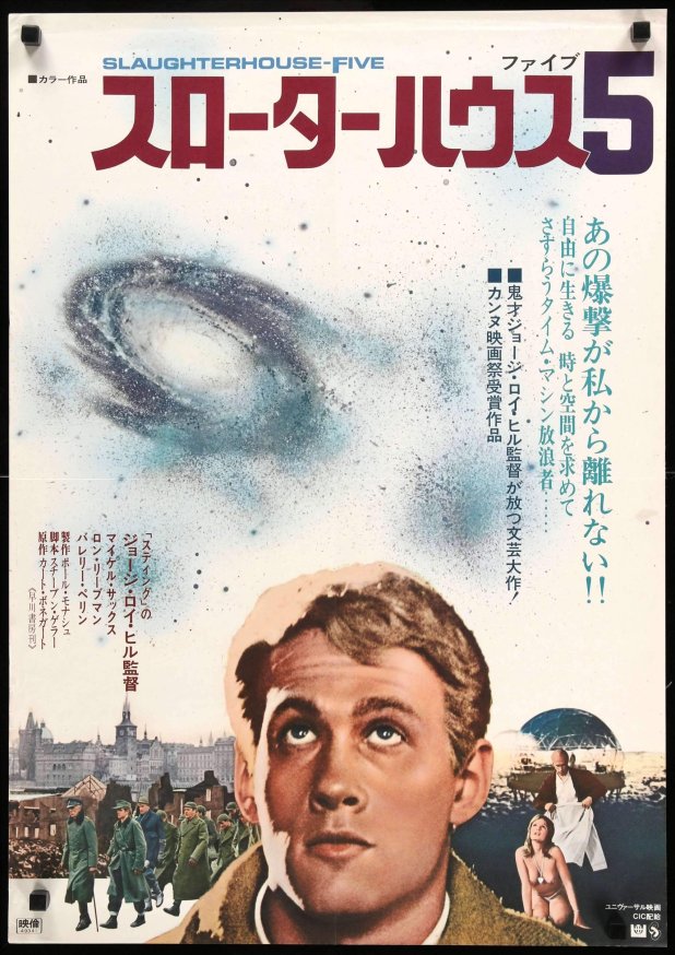 Praised by Vonnegut himself, Slaughterhouse-Five was directed by George Roy Hill (Butch Cassidy and the Sundance Kid, The Sting, Thoroughly Modern Millie). The author would say, “I love George Roy Hill and Universal Pictures, who made a flawless translation of my novel Slaughterhouse-Five to the silver screen. I drool and cackle every time I watch that film, because it is so harmonious with what I felt when I wrote the book.”