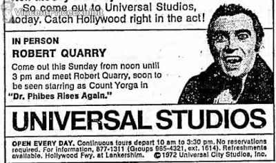 There were plans for a whole bunch more of these films and the fact that they were never made saddens me to this day. I’ve heard that a third film would Phibes fighting Nazis. I’ve also heard that it’d be about the key to Olympus. Or Phibes going up against Dr. Vesalius’ son. Or Victoria Phibes herself coming back, just as sinister as her husband. There have been titles thrown around like Phibes Resurrectus, The Seven Fates of Dr. Phibes and The Brides of Dr. Phibes. There was even thought of Count Yorga facing off with Dr. Phibes, a fact which delights me to no end.