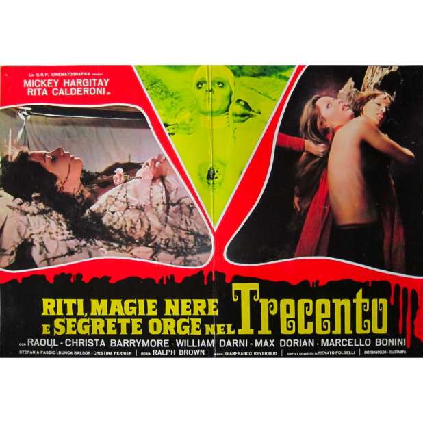 Also called Riti, magie nere e segrete orge nel Trecento…(Rites, Black Magic and Secret Orgies in the Fourteenth Century…) and The Reincarnation of Isabel, this was written and directed by Renato Polselli, who also made Delirio Caldo, The Vampire and the Ballerina and Revelations of a Psychiatrist on the World of Sexual Perversion.