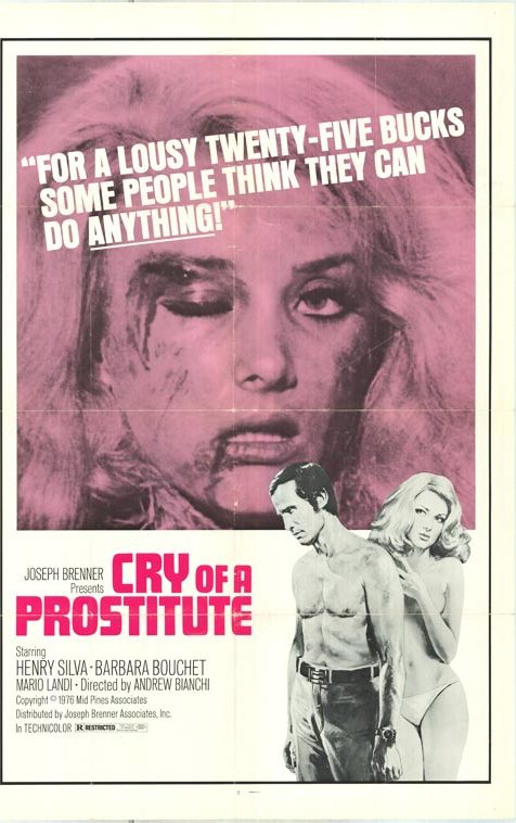 Released in the US with that garish poster above by Joseph Brenner Associates — the people who brought you Eyeball, The Devil’s Rain!, The Girl in Room 2A and many more — Cry of a Prostitute was sold with the tagline, “For a lousy twenty-five bucks, some people think they can do anything!” along with Bouchet’s abused face.