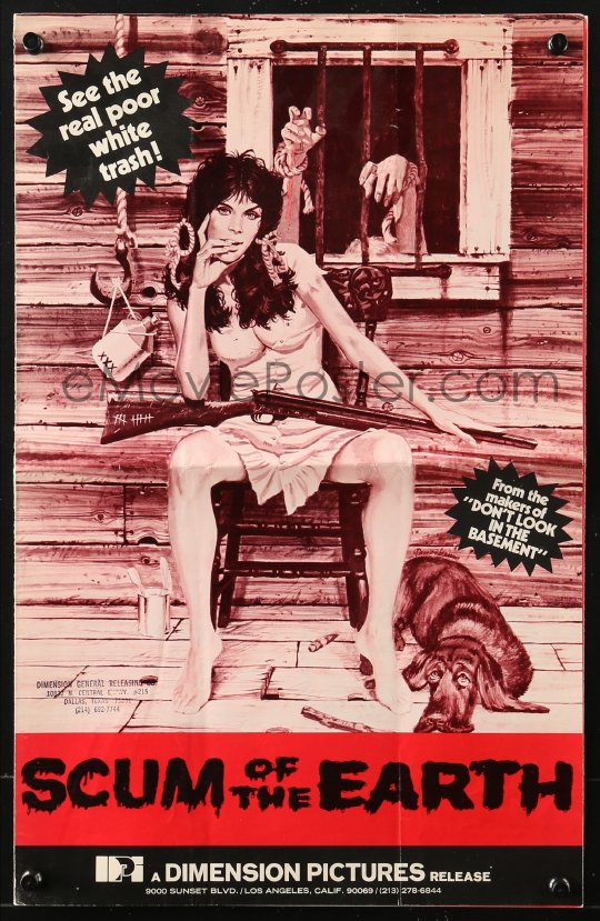 Before it’s over, we have heads exploding as they’re shot, a child’s body on an autopsy table, a head goes flying out a windshield, multiple dead bodies smashed by a steamroller, a bandsaw go clean through someone’s head and Silva drag Bouchet around a barn, beat her with a belt, then beat her in the face with the belt buckle, then have violent bloody sex with her in a grimy barn. Earlier in the film — because this is an Italian film where women come to enjoy all manner of upsetting couplings, our hero shoves her head into a bloody pig carcass while they make love — well, not really, right? — in the kitchen. To make things worse, Bouchet is totally turned on by this experience. Then she tells her husband all about it, because that’s the only way they can make love. Yes, this movie is the scumbag movie that scumbag movies warned you about.