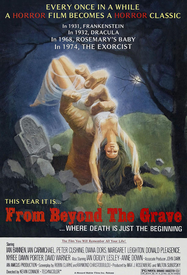 The poster for this movie states, “Every once in a while, a horror film becomes a horror classic. In 1931, Frankenstein. In 1932, Dracula. In 1968, Rosemary’s Baby. In 1974, The Exorcist. This year it is…From Beyond the Grave…where death is just the beginning!” Man, talk about hyperbole! Sure, this Amicus portmanteau is good, but it went right for the balls there, right?