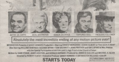 PS – Here’s the link to a June 1975 Argosy interview with LaVey during the filming of The Devil’s Rain! where he discusses buying the panties of “MGM’s most famous stars- from Greer Garson to Liz Taylor – with the labels still on them,” being minimized on movie sets and Ernest Borgnine accepting an honorary priesthood.