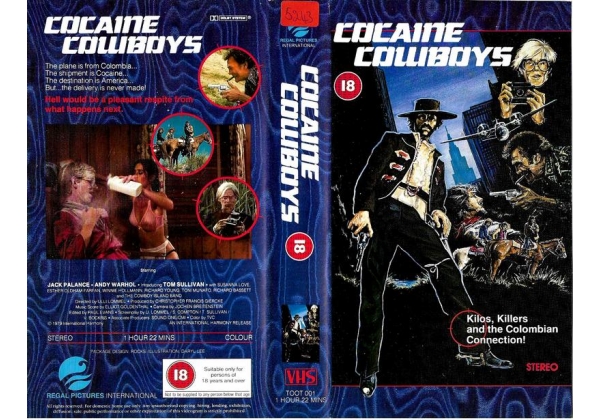 Filmed at Andy Warhol’s summer home in Montauk — he also shows up as himself — Cocaine Cowboys is the story of Dustin (Tom Sullivan), who starts the movie being interviewed by Warhol, who acts like he doesn’t know the tale we’re about to hear even if he’s the one that saves the day.
