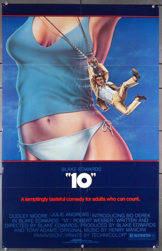 Directed and written by Blake Edwards, 10 broke new ground and was quite a big deal when released in 1979. Bo Derek’s cornrow hairstyle was a major fashion happening, and she turned this movie’s fame into, well, Bolero. The less said — pleasure! — the better.