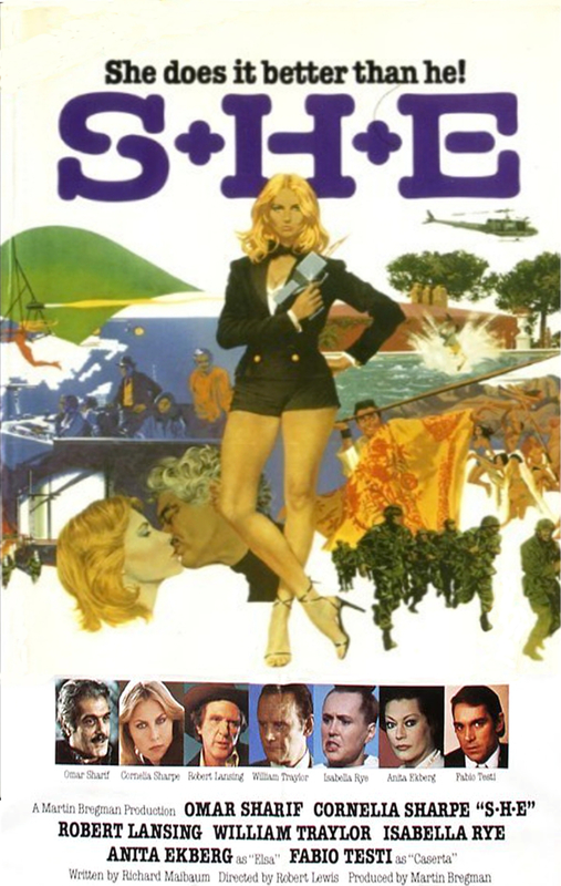 Lavinia Kean is S*H*E*, a secret agent in the early 80’s. Director Robert Lewis did the film because it let him spend three months in Rome on someone’s else’s money. He also claimed that Anita Ekberg was difficult with and he fired her, but brought her back when she told him that she would behave. He also had issues with Omar Sharif and lead actress Cornelia Sharp.