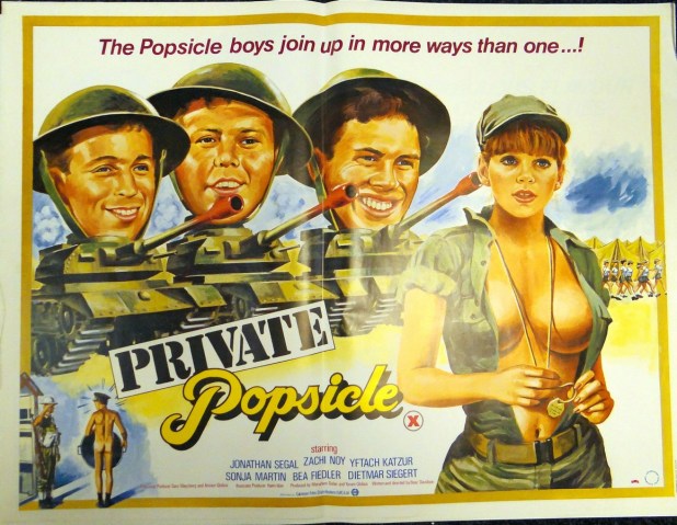 After Lemon Popsicle, Going Steady and Hot Bubblegum, but before Baby Love, Up Your Anchor, Young Love: Lemon Popsicle 7Summertime Blues and Lemon Popsicle: The Party Goes On and this movie’s side sequel Private Manuevers, what else was there to do but to join the Israeli army? That’s what Bobby, Benji and Hughie are up to next. I mean, there is a mandatory draft, so it only makes sense, except that this army allows them to cosplay Some Like It Hot.