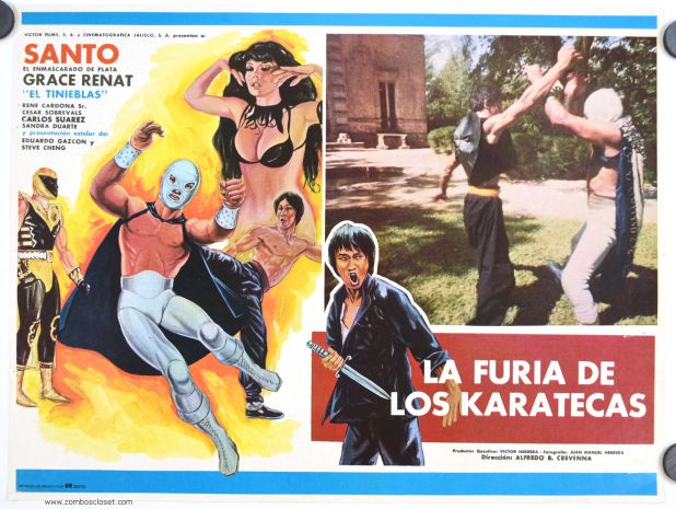 That same year, Santo would appear in his final film, a sequel to El Puno de la Muerte (The Fist of Death), which was shot concurrently. Both movies concern the sisterly war between twins Kungyan, who dressed in black and is evil, and Queria, who — you guessed it, muchacho — dresses in white and is good. They’re both played by Grace Renat and fur and fabric can barely contain the pneumatic tendencies of her busoms. Russ Meyer must have been going insane halfway across the world and had no idea why.