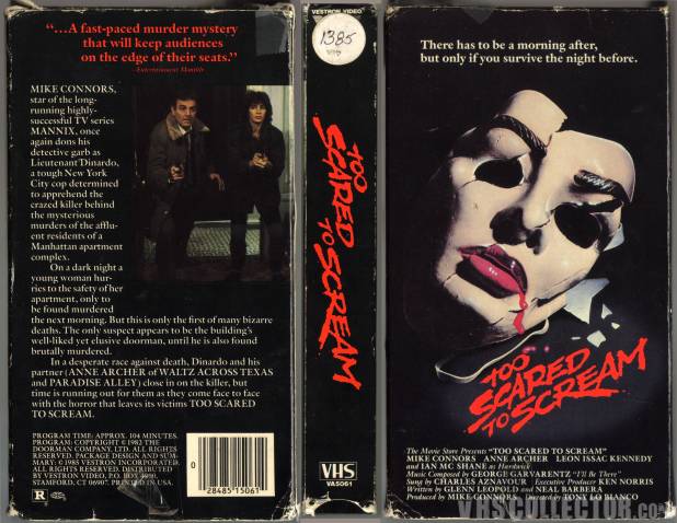 Detective Dinardo (Mike Connors, Mannix) is on the case in New York City, where those who live in a fancy apartment building are those who are dying horribly. All fingers seem to point in the direction of a doorman (an impossibly young Ian McShane), so Dinardo does what any good cop would do. He puts a rookie named Kate (Anne Archer) into harm’s way.