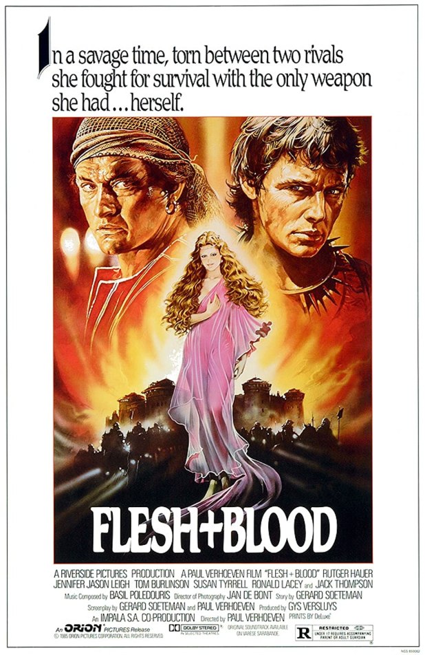 Directed by Paul Verhoeven and written by his frequent collaborator Gerard Soeteman, Flesh+Blood started as ideas that Verhoeven, Soeteman and Hauer didn’t get to do on the TV show Floris. It was filmed as God’s Own Butchersand would be released in the U.S. as The Rose and the Sword.