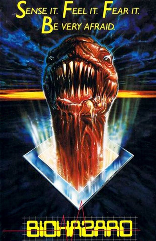 Psychic Materialization, drugs, monsters, busty psychics, the military industrial complex, bad computer graphics, a comedy relief hobo in love with the E.T. poster he’s found and a shock ending that mixes blood, boobs and beasts all at once — you know that Biohazard isn’t good for you but have you ever huffed paint? Let me tell you, it’s cheap and it hurts your head for days and you know that you’ll be slowed down for a few minutes, probably unable to stand and then you realize that you’re doing way more than smoking or drinking, you’re messing with your brain for life because that rag or bottle you’re sneaking smells out of makes you forget things, sometimes for so long that you never remember them again.