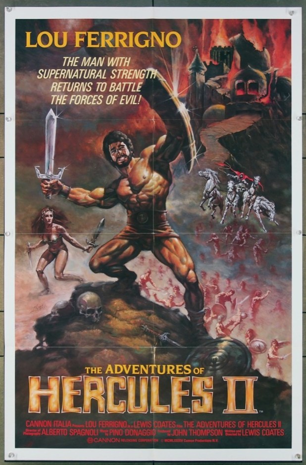 Actually, according to Austin Trunick’s The Cannon Film Guide Volume 1: 1980-1984 — and Luigi Cozzi — Ferrigno had been lured to Italy to do reshoots for Seven Magnificent Gladiators when Menahem Golan came up with a plan to get him to stay for four weeks instead of two and secretly make a sequel. No one was allowed to inform Ferrigno that they were making a new movie, as they couldn’t afford to pay him for one.