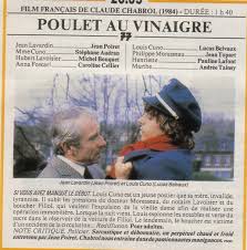 The original French title of this movie — Poulet au vinaigre — means vinegar chicken, but poulet also means cop, so it’s a play on words. The detective film that results, the first several appearances of Inspecteur Jean Lavardin (Jean Poiret), takes the notions of the genre and gives it the spin that director Claude Chabrol is so famous for.