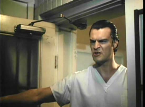 In this longer version, Harry Billings was driving home with his new wife when he got sideswiped and she died, which leads to him sleeping barefoot on her grave. He tries to jump off a bridge on the very same road where this accident happened and gets brought to the asylum of Dr. Brewer and Otto (Richard Moll) to abduct women whose brains will be lobotomized. Some of this new movie is shot on video, some are from the original footage and it’s all strange because characters suddenly become a decade older or younger.