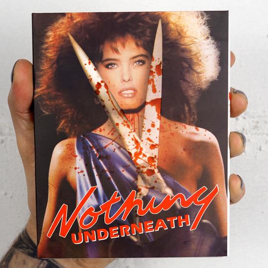 EDITOR’S NOTE: We originally featured Nothing Underneath and Too Beautiful to Die on June 17, 2020 and December 28, 2017. We’re beyond thrilled that Vinegar Syndrome is releasing these on an amazing double blu ray set, as we need more 80s giallo to come out in the U.S.! Here’s to someday getting Obsession: A Taste for Fear in the same format soon!