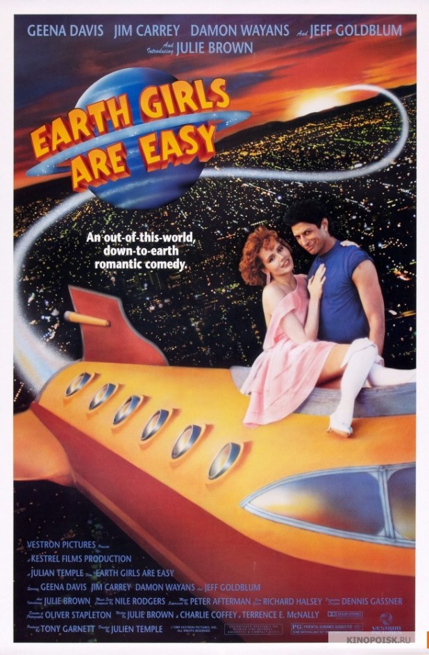 Three aliens — Mac (Jeff Goldblum, Jurassic Park), Zeebo (Damon Wayans, The Last Boy Scout) and Wiploc (Jim Carrey, Man in the Moon) notice a broadcast from Earth filled with aerobics and half-naked women. They follow the signal to Earth and the home of Valerie (Geena Davis, The Long Kiss Goodnight), a manicurist who has lost her fiance, Ted (Charles Rocket, who famously said fuck on Saturday Night Live in an era where that would ruin your career). The aliens crash land in Valerie’s pool and when she investigates, she smacks her head against the UFO.