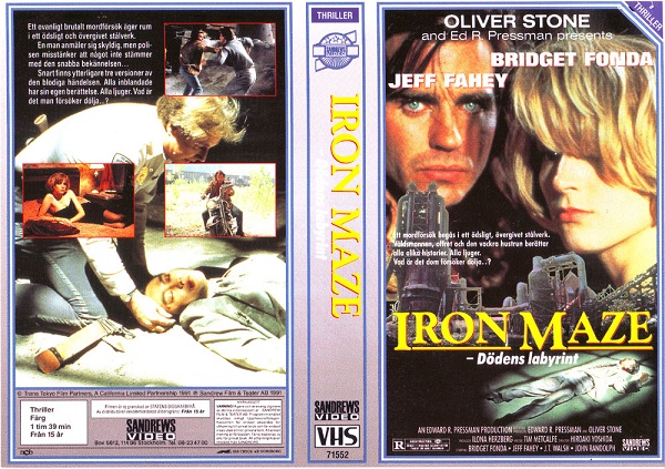 Directed by Hiroaki Yoshida, whose Twilight of the Cockroaches had an English translation by Robotech remixer Carl Macek and inspired Joe’s Apartment, Iron Maze was co-written by Yoshida and Tim Metcalfe, who wrote Kalifornia, Revenge of the Nerds and Fright Night 2. What a resume! It was produced by Oliver Stone, whose name is high above everyone else on the VHS box art.
