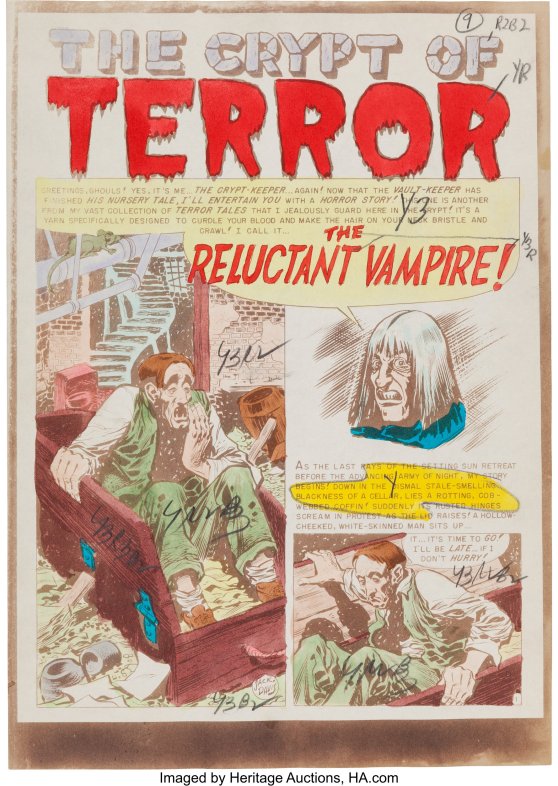 It’s based on “Split Second!” from Shock SuspenStories #4, which was written by Al Feldstein and William Gaines and drawn by Jack Kamen.