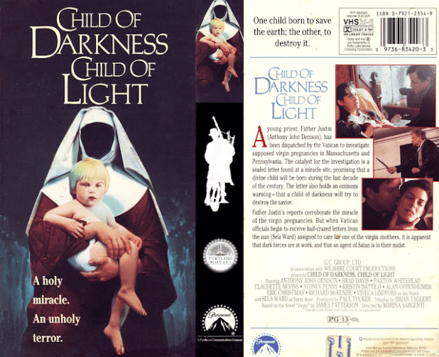 Based on the James Patterson novel Virgin (which has been retitled Cradle and All), Child of Darkness, Child of Light was directed by Marina Sargenti, who made one of my favorite early 90s movies, Mirror, Mirror. It was written for TV by Brian Taggert, who had some solid credits of his own in The Spell, Visiting Hours, Of Unknown Origin, the two V mini-series, The New Kids, Wanted Dead or Alive, Poltergeist III, Deadly Family Secrets and Omen III and IV.