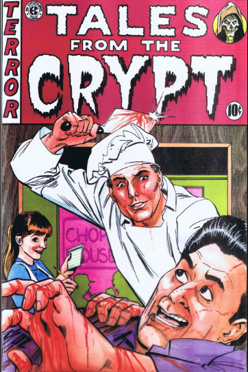 This comes from Vault of Horror #30 and was written by Al Feldstein and William Gaines and drawn by Johnny Craig. In that story, the twins are more innocent, but the end of the story is almost the same, as they split the antagonist with an axe.