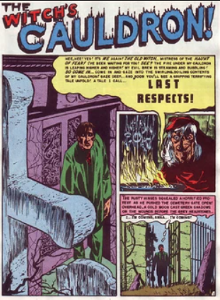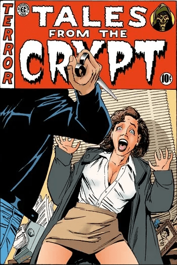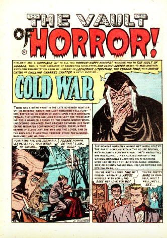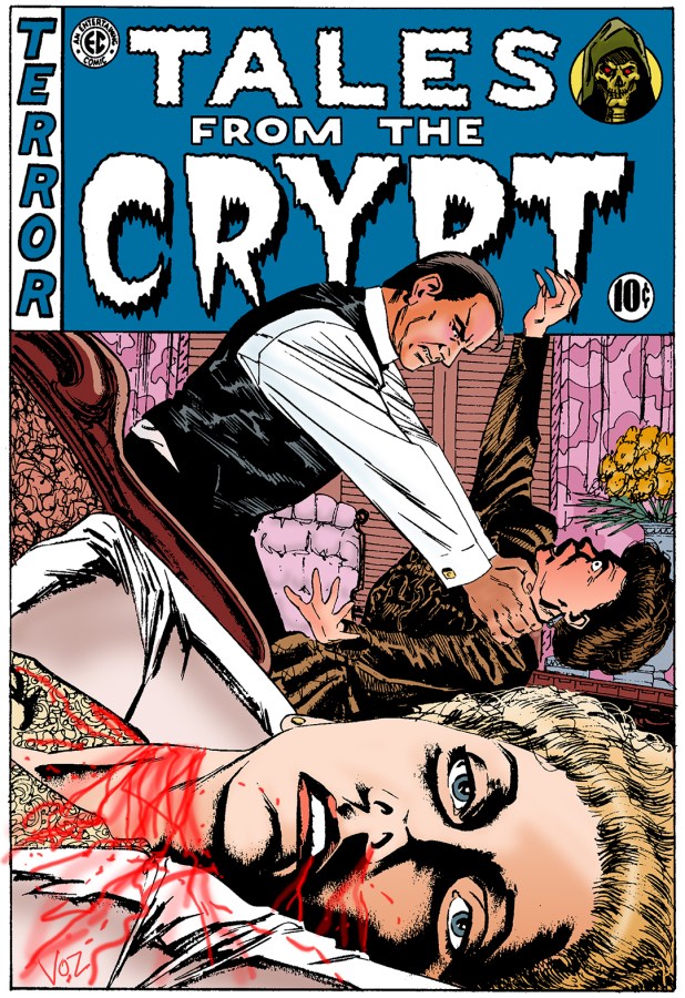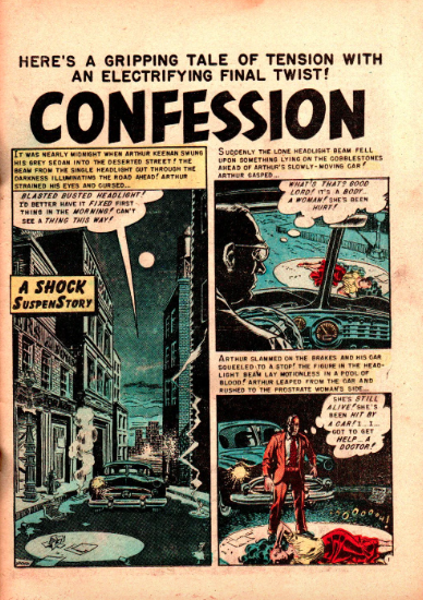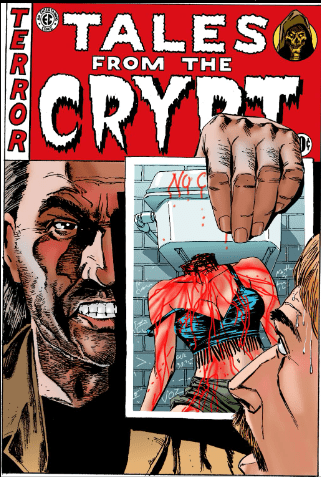 This episode is based on “Confession” from Shock SuspenStories #14. It was written by Al Feldstein and William Gaines and drawn by Wally Wood. The story and ending are similar, but the occult and severed heads are absent.