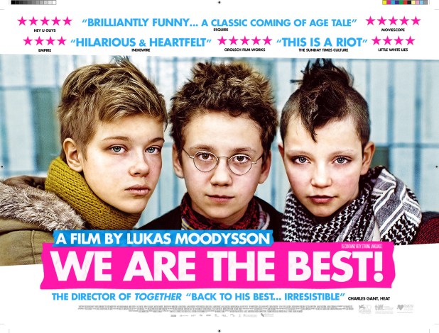 After the experimentation and bleak outlook of the past few Lukas Moodysson movies, We Are the Best! is a charming look at growing up young and punk rock in 1982 Stockholm. It’s based on his wife’s autobiographical graphic novel Never Goodnight.