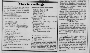 **The Pittsburgh Catholic also featured a list of what films good Catholics should avoid. Notably, favorites like Amityville II: The Possession, The Howlingand Halloween were rated O for morally offensive. Therefore, they’re the movies you want to see.