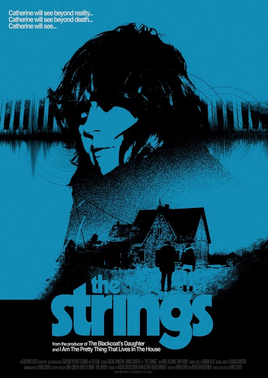 One look this film’s ’70s drive-in retro one-sheet and you can see that Canadian writer and director Ryan Glover is one of us: raised on those classic horror films from the early days of video stores filled with wares from the ’70s. Primarily a cinematographer with 20 credits to his resume, The Strings is his third dual credit. He made his debut with a short, The Key (2008), and a Toronto-based drama, Hills Green (2013). Both films are collaborative efforts from Glover and his screenwriting partner, Krista Dzialoszynski.